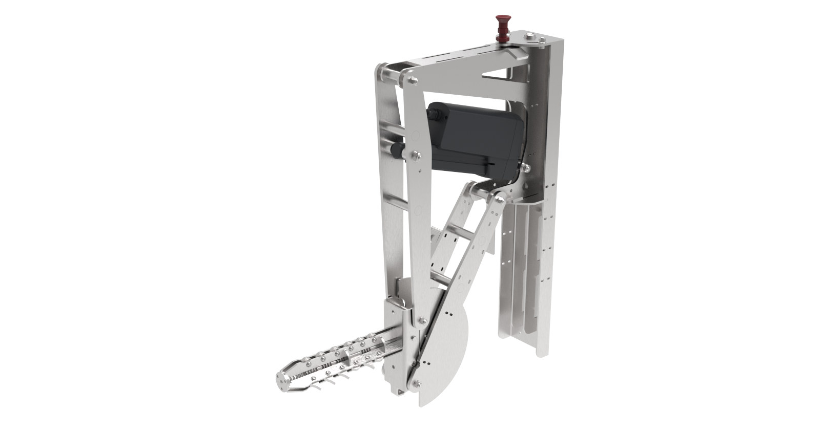 - Elektrický uchopovač s úhlem 90° umožňuje manipulaci s břemeny o hmotnosti až 110 kg. Váží 30 kg. Je vyrobeno z nerezové oceli 304 L. Průměr je 76 mm. Umožňuje manipulaci se svitky s maximálním poloměrem 600 mm a délkou 600 mm.